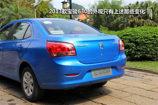 2013款宝骏630变化之处1.5L车型前脸改为镀铬设计换装运动感更强的轮毂造型中控台时钟被储物格代替全新样式的仪表盘1.5L车型增加棕色内饰增加多处降噪技术车身颜色由珊瑚红/碧海蓝代替玛瑙红/宝石蓝